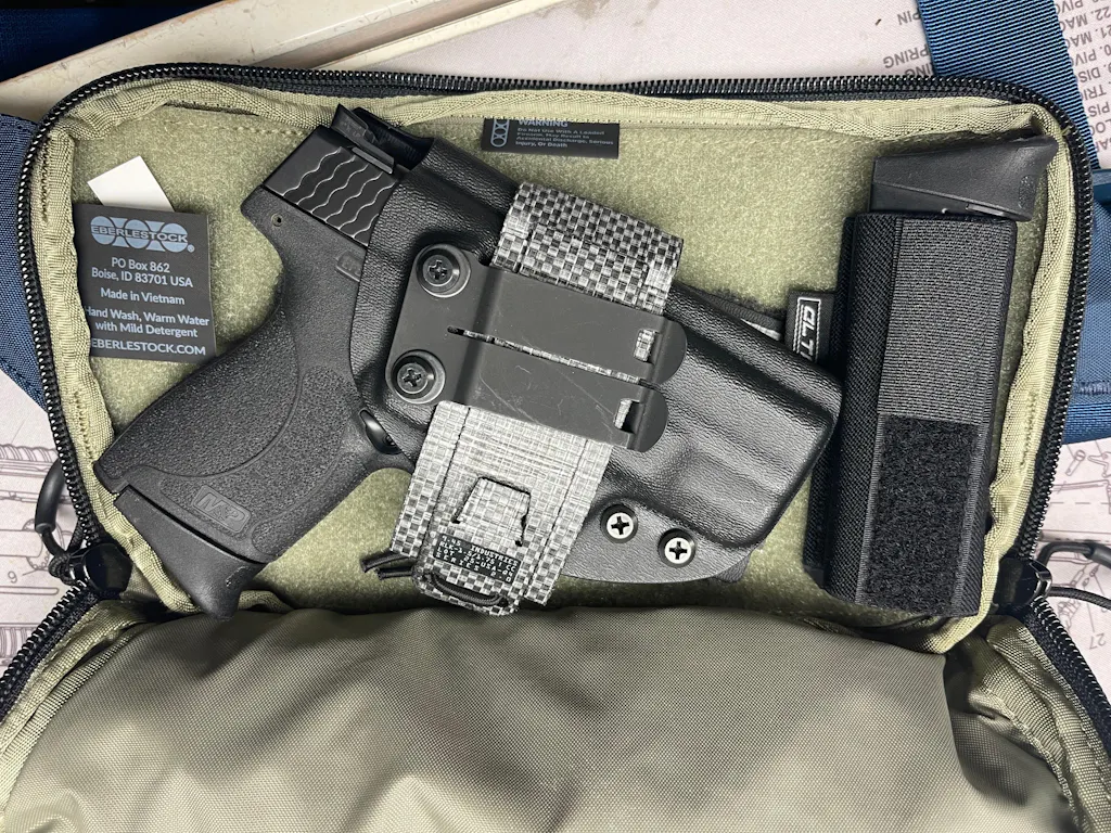 This adapter is designed for use with standard single-holster IWB configurations. It is not compatible with oversized or extra-wide setups, including sidecar-style holsters, integrated magazine carriers, or other extended multi-component systems. Use with such configurations may result in improper fit, reduced retention, or compromised stability.